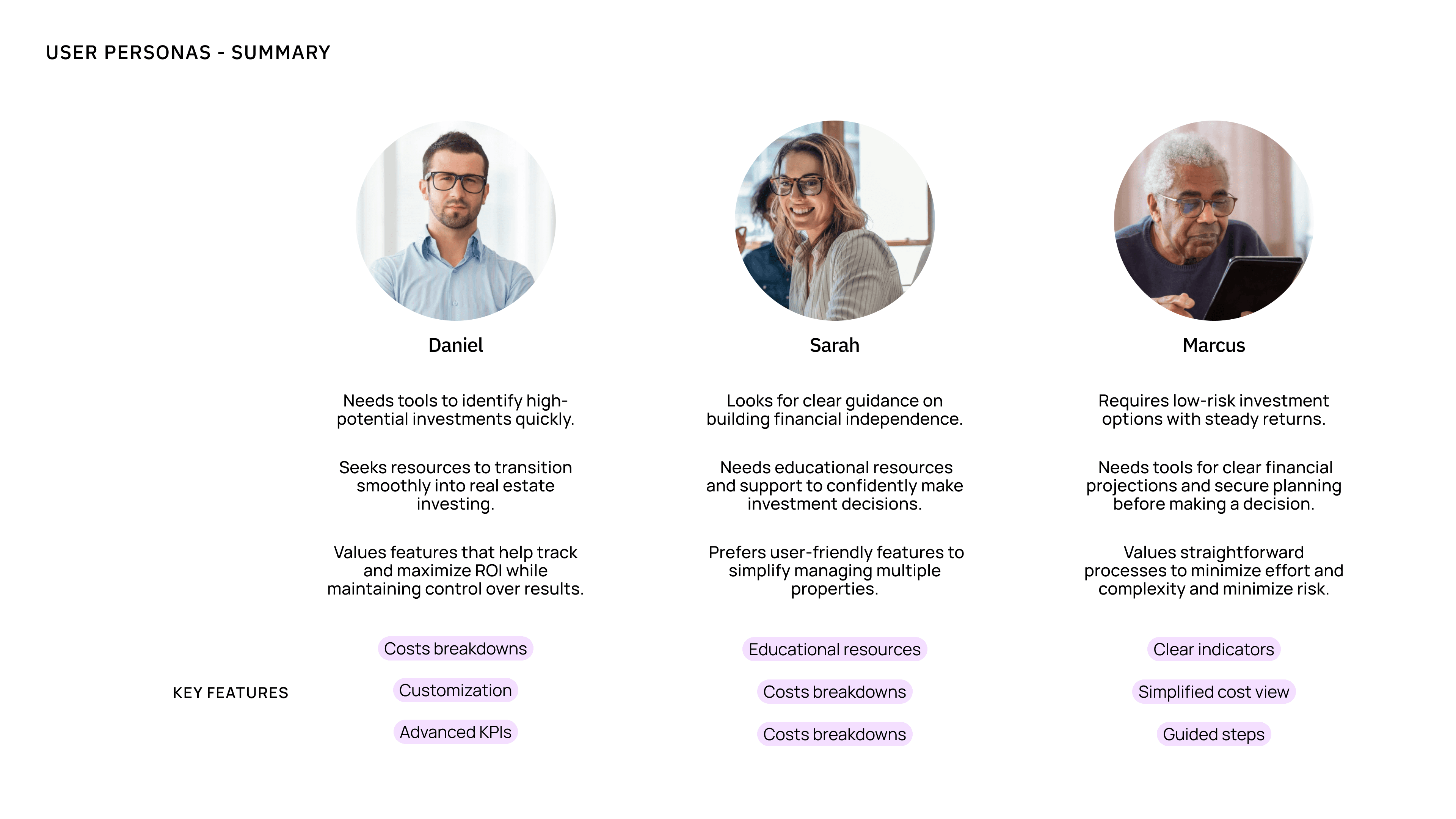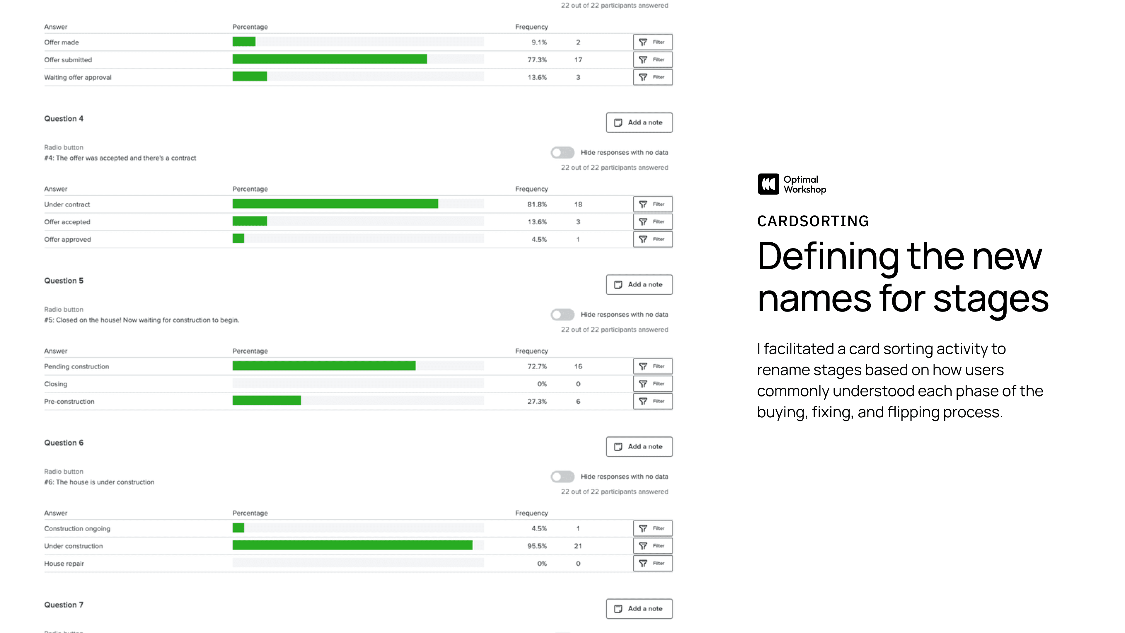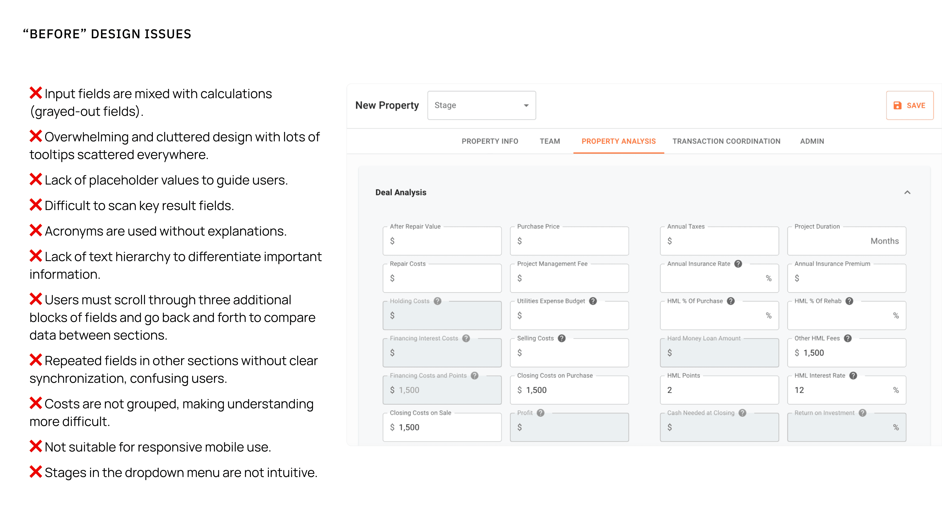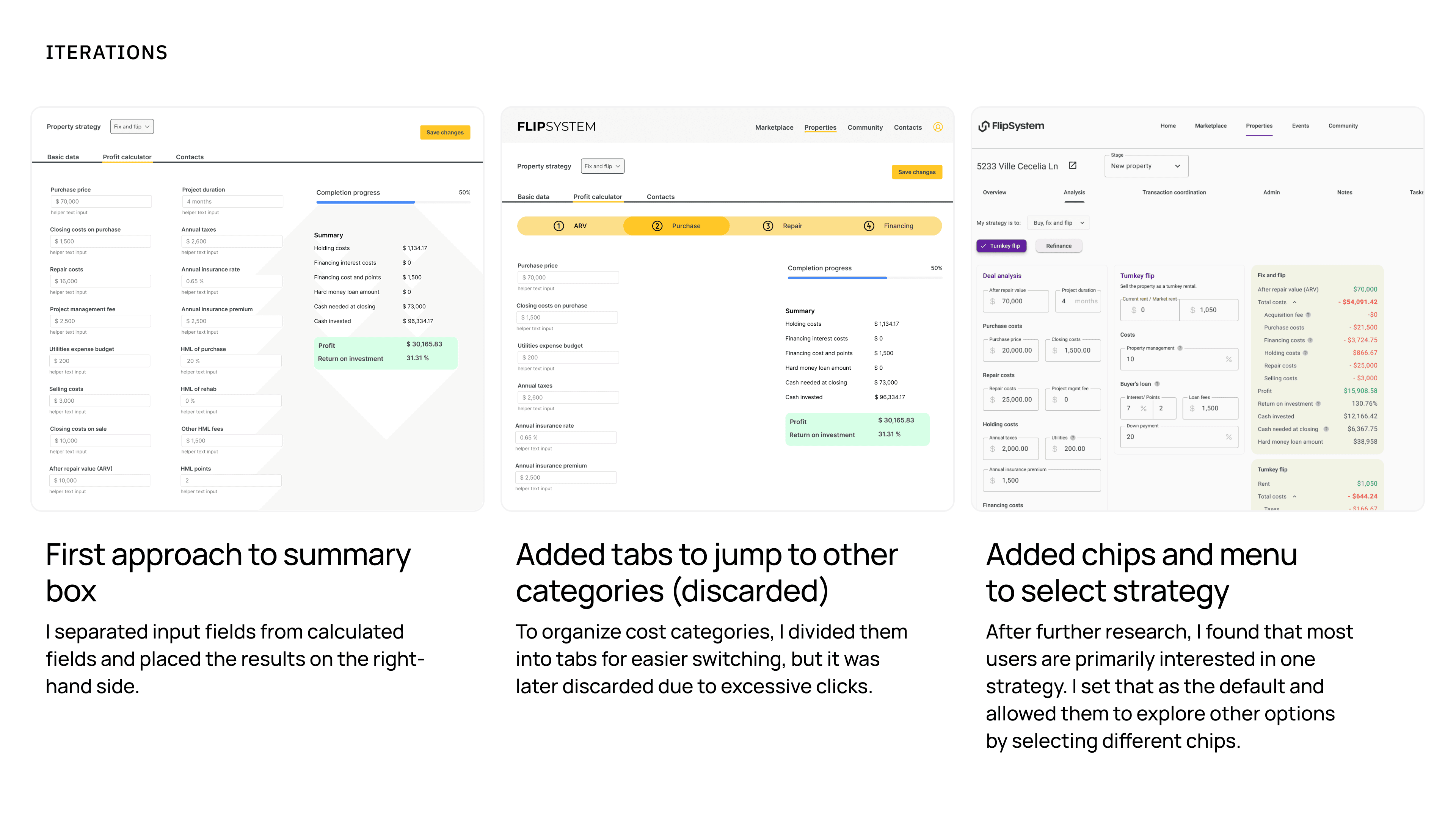The process started with in-depth discussions with the founders and CTO to understand the problem. Through collaborative sessions, I learned the fix-and-flip process, how numbers are calculated, and what defines a good investment, equipping me to begin research and align with their language.